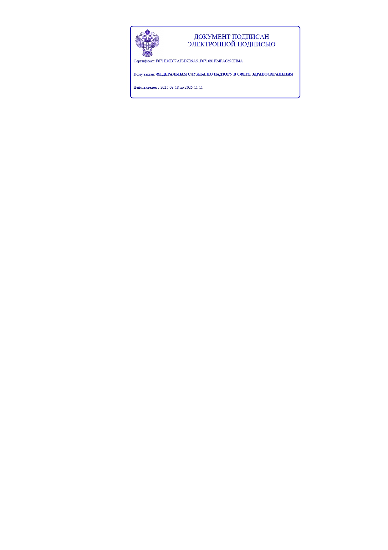 - Регистрационное удостоверение Росздравнадзора № РЗН 2024/23611 от 12.09.2024